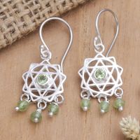 Chakra Themed Sterling Silver and Peridot Dangle Earrings 'Verdant Spring' Item ID: 2671748464
