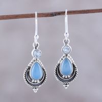 Chalcedony and Blue Topaz Dangle Earrings from India 'Sky Fascination' Item ID: 2671792980