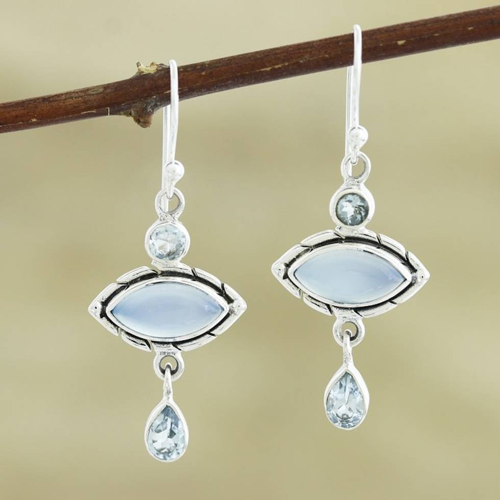 Chalcedony and Blue Topaz Sterling Silver Dangle Earrings 'Blue Fusion' Item ID: 2671789628