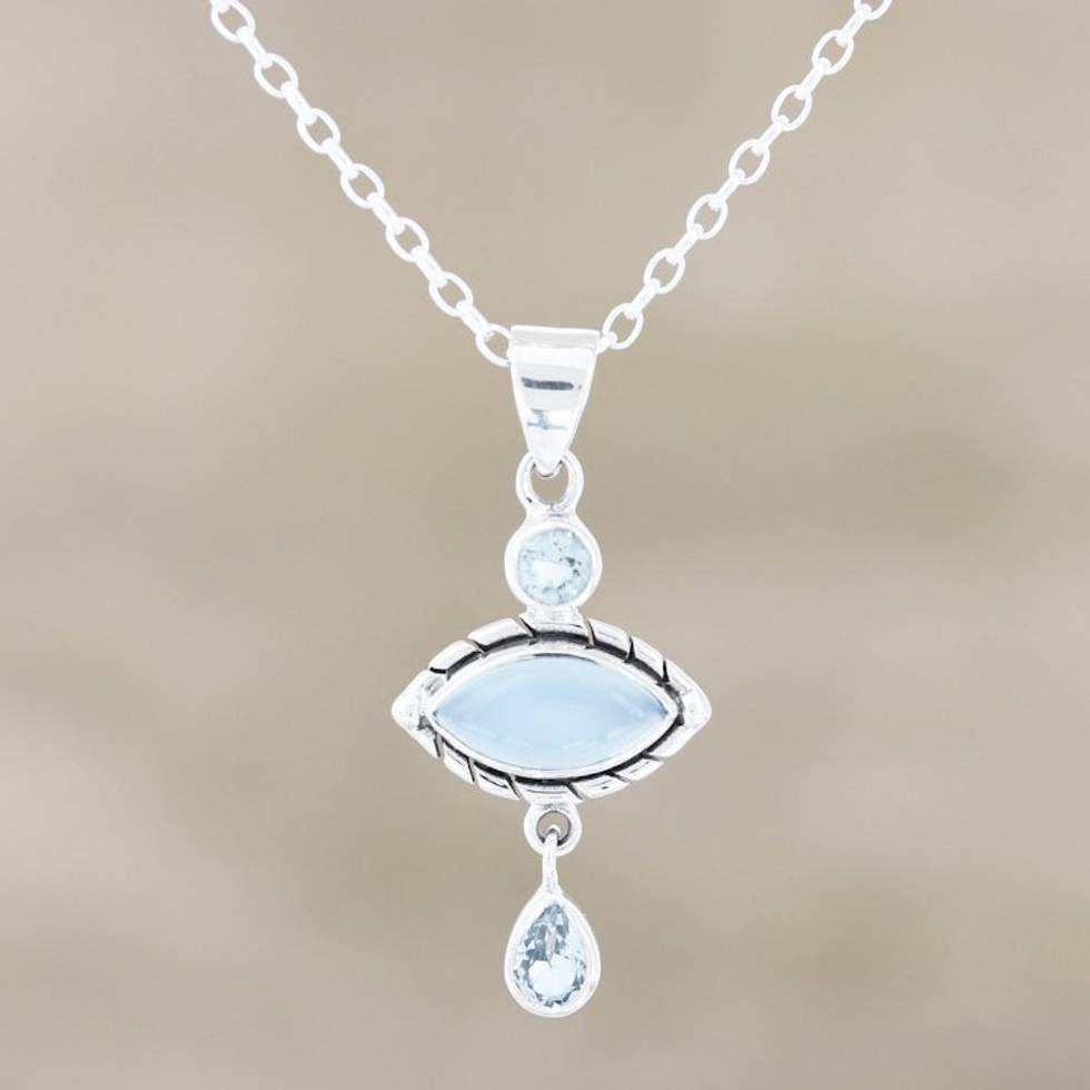 Chalcedony and Blue Topaz Sterling Silver Pendant Necklace 'Blue Fusion' Item ID: 2671789433