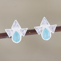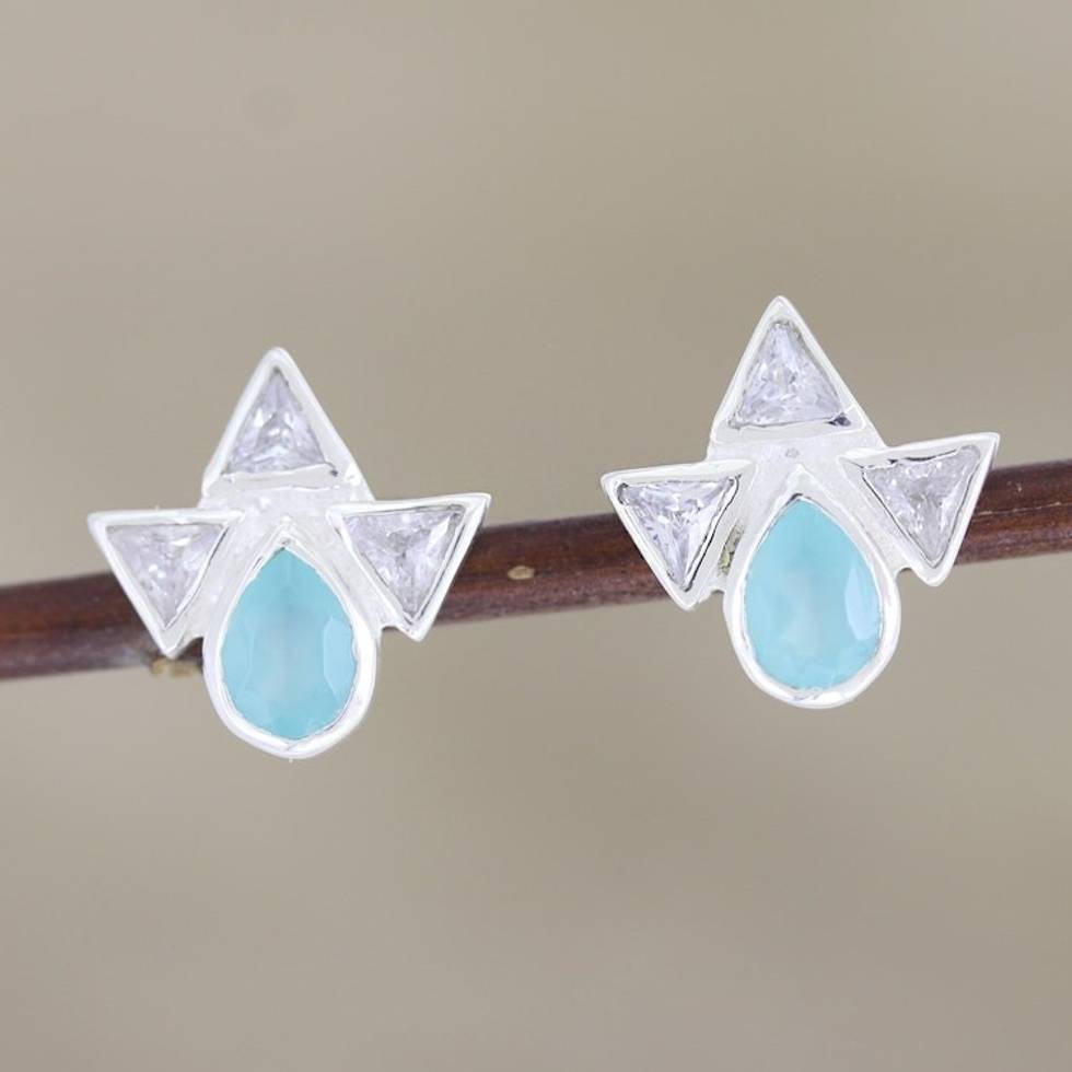 Chalcedony and Cubic Zirconia Button Earrings 'Icy Tears' Item ID: 2671790001