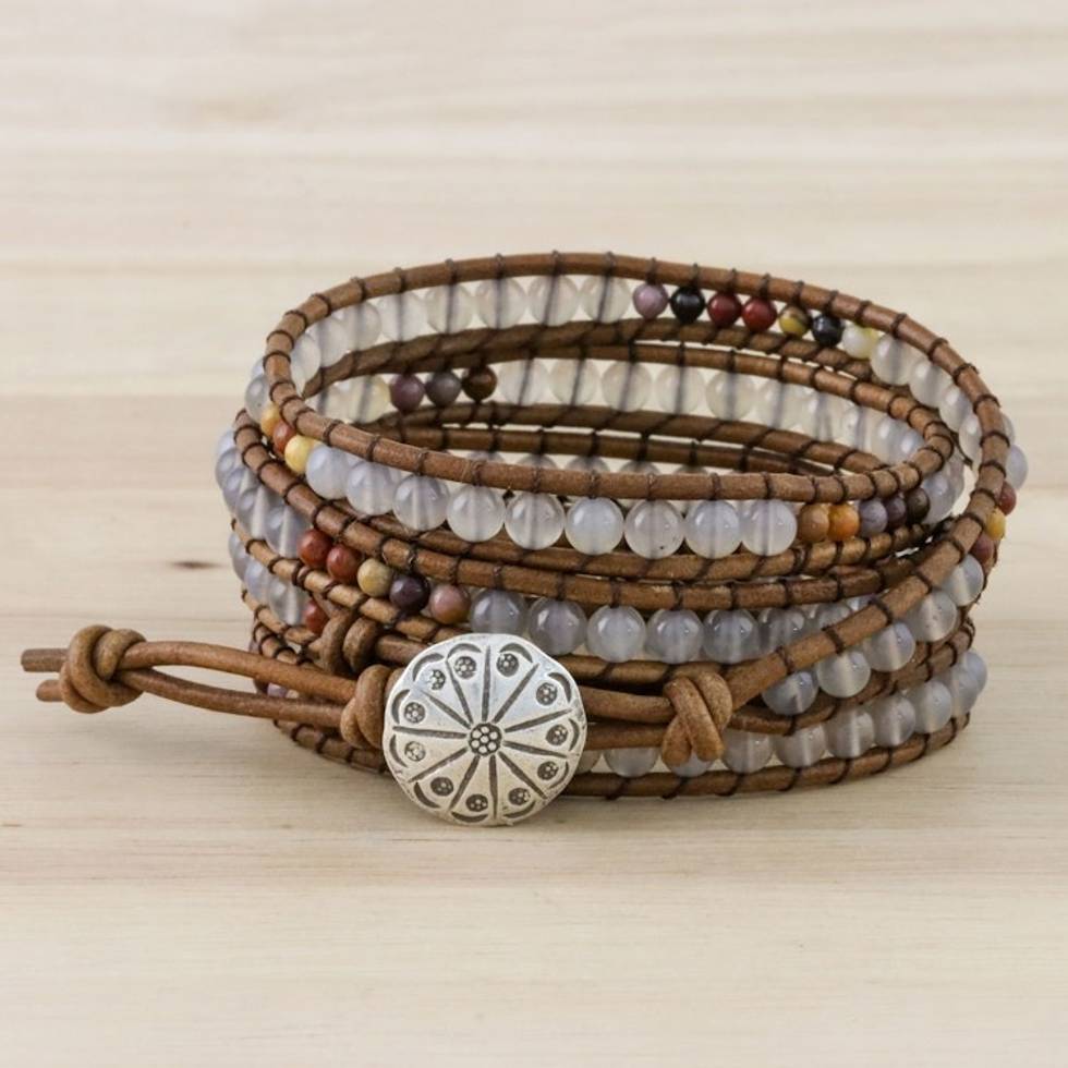 Chalcedony and Jasper Beaded Wrap Bracelet from Thailand 'Winter Walk' Item ID: 2669926720