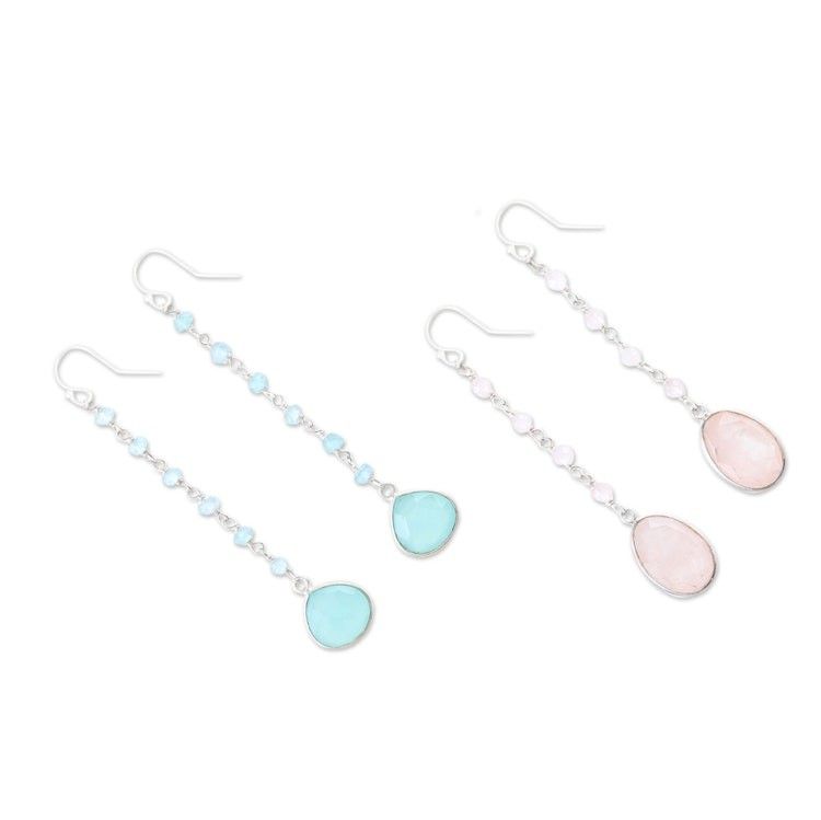 Chalcedony and Rose Quartz Dangle Earrings Set of 2 'Paradise of Blessings' Item ID: 2671786842