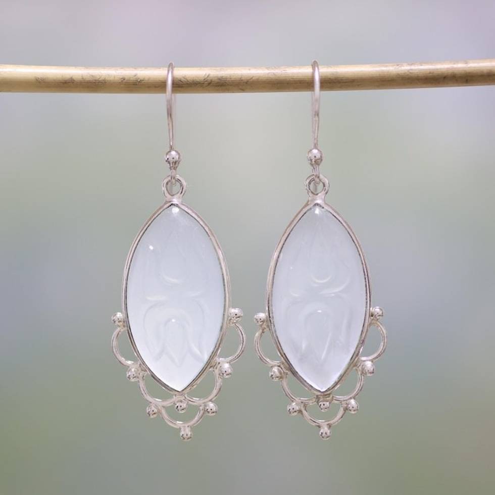 Chalcedony and Sterling Silver Dangle Earrings from India 'Heavenly Bliss' Item ID: 2671790521