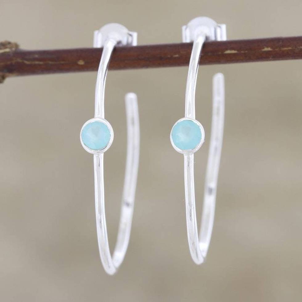 Chalcedony and Sterling Silver Half-Hoop Earrings 'Cloud Busting' Item ID: 2676664042