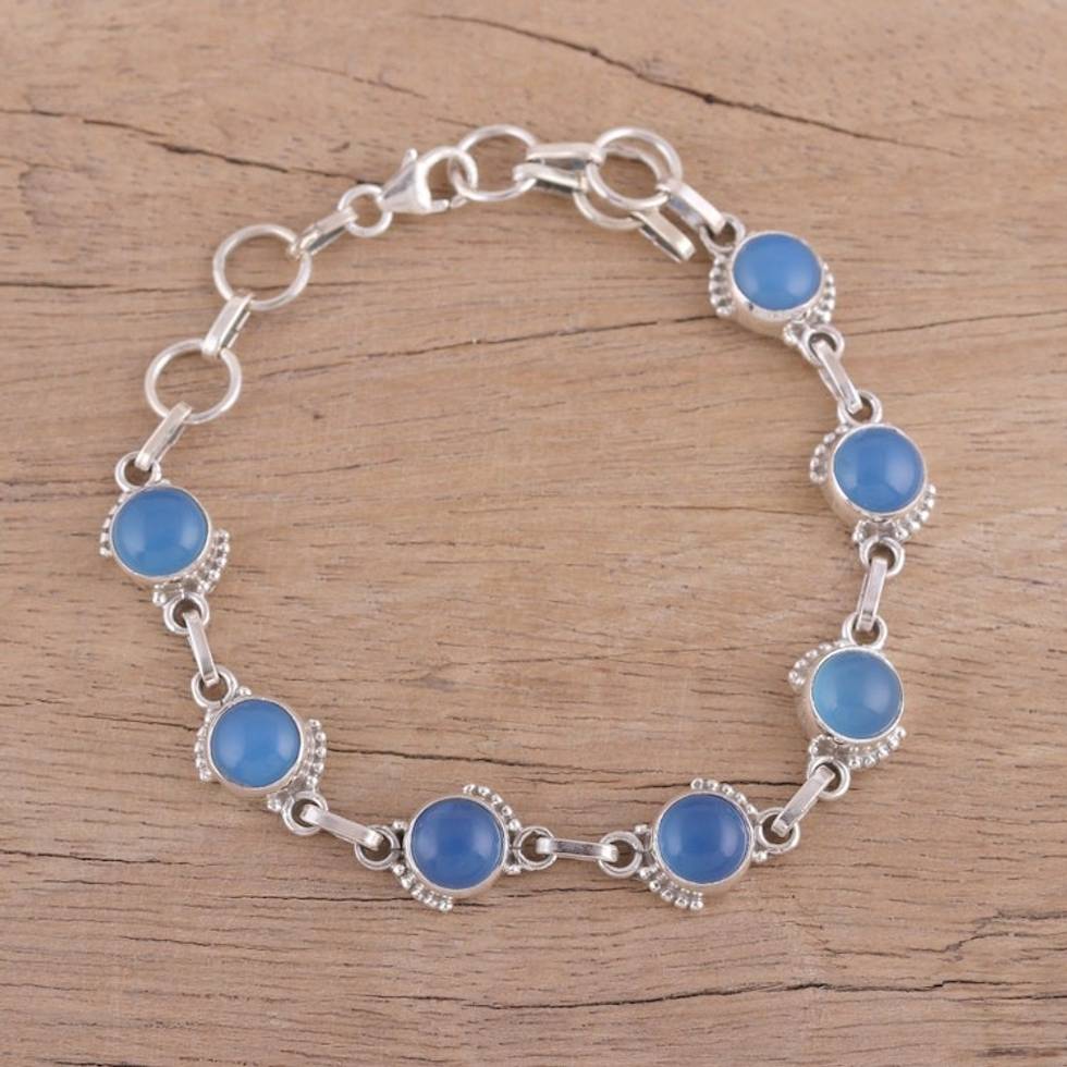 Chalcedony and Sterling Silver Link Bracelet from India 'Charming Orbs' Item ID: 2671791548