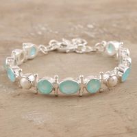 Chalcedony and Sterling Silver Link Bracelet 'Sea Bliss' Item ID: 2671624162