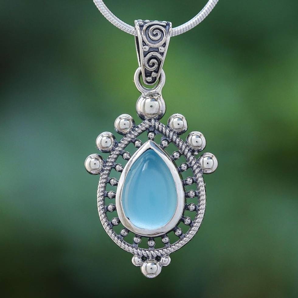 Chalcedony and Sterling Silver Pendant Necklace 'Sky Mirror' Item ID: 2671800247