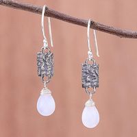 Chalcedony and Textured Sterling Silver Dangle Earrings 'Facets and Folds' Item ID: 2671798511
