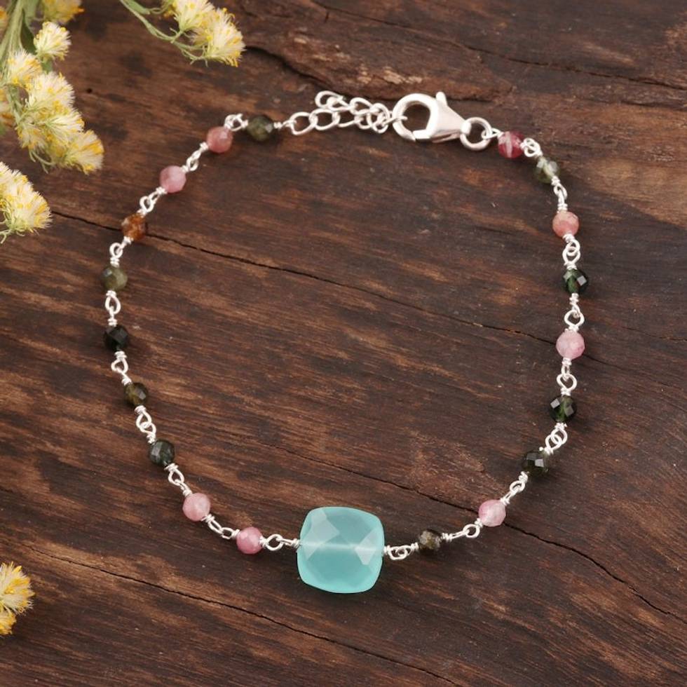 Chalcedony and Tourmaline Pendant Bracelet from India 'Colorful Combo' Item ID: 2671621604