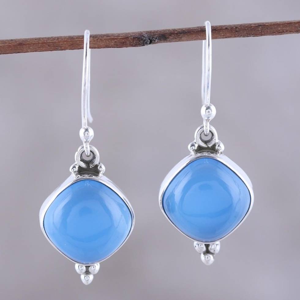 Chalcedony Dangle Earrings from India 'Gleaming Grandeur' Item ID: 2671792011