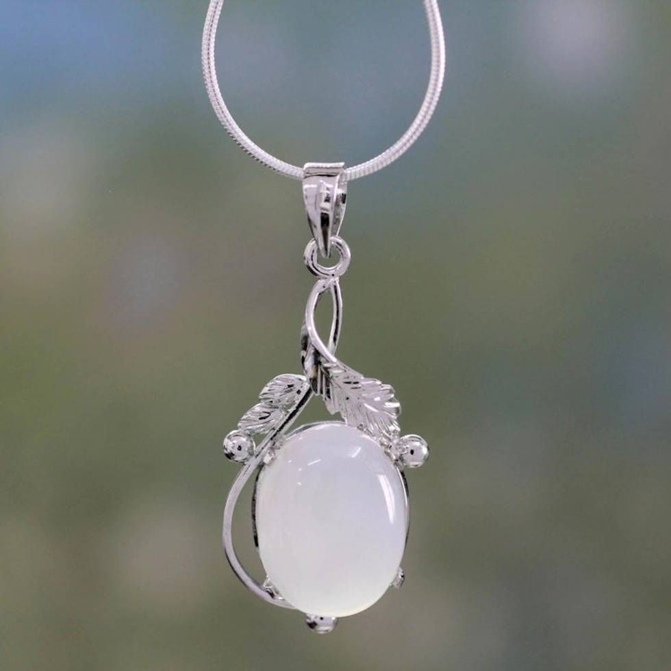 Chalcedony Necklace Sterling Silver Artisan Jewelry 'Moon Goddess Charm' Item ID: 2671795041