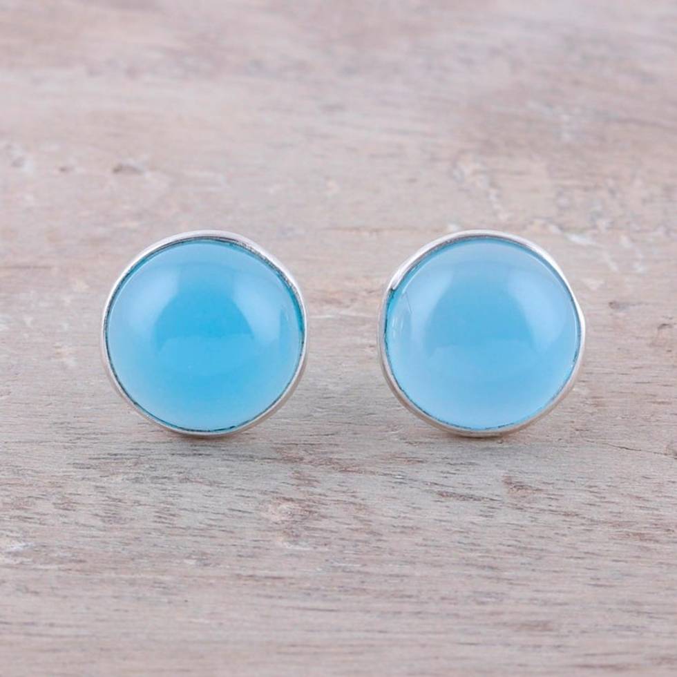 Chalcedony Stud Earrings in Blue from India 'Moonlight Peace in Blue' Item ID: 2671792012