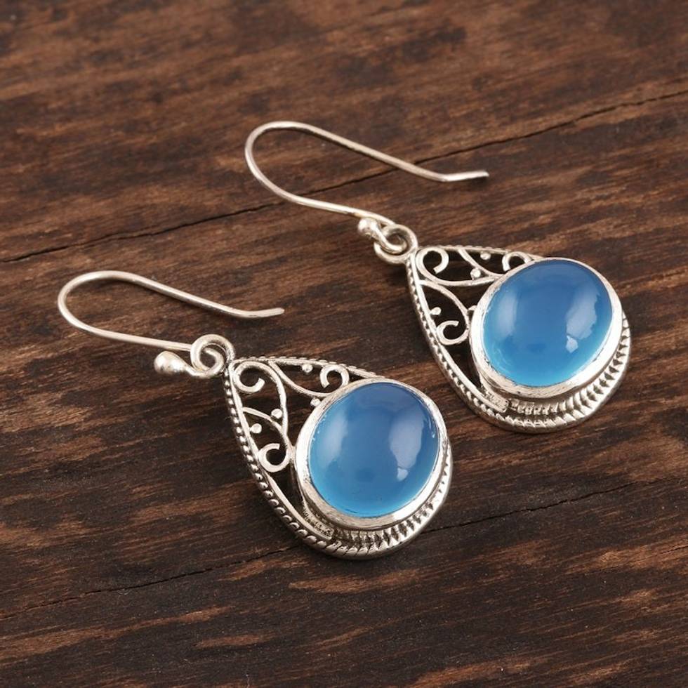 Chalcedony Teardrop Sterling Silver Dangle Earrings 'Glowing Grandeur' Item ID: 2671790019