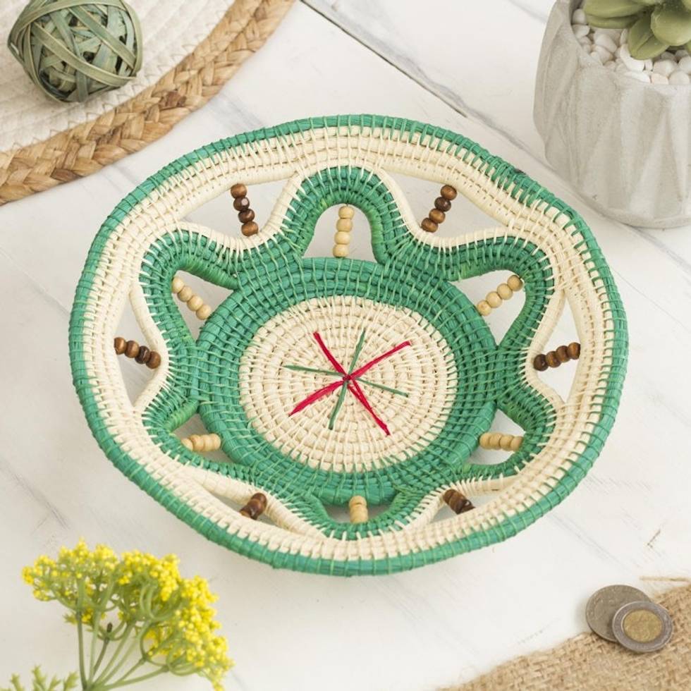 Chambira Tree Fiber Decorative Basket in Viridian from Peru 'Magical Weave in Viridian' Item ID: 2671819695
