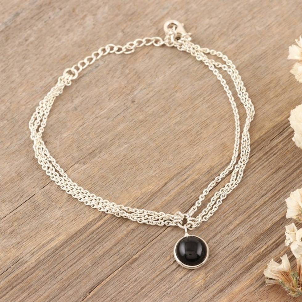Charm Bracelet Made with Black Onyx and 925 Sterling Silver 'Magical Globe' Item ID: 2671789046