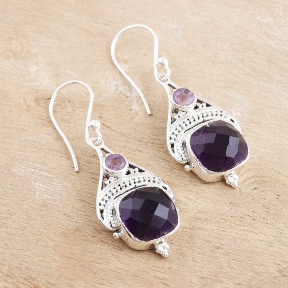 Checkerboard Amethyst Sterling Silver Dangle Earrings 'Purple Royalty' Item ID: 2671625318