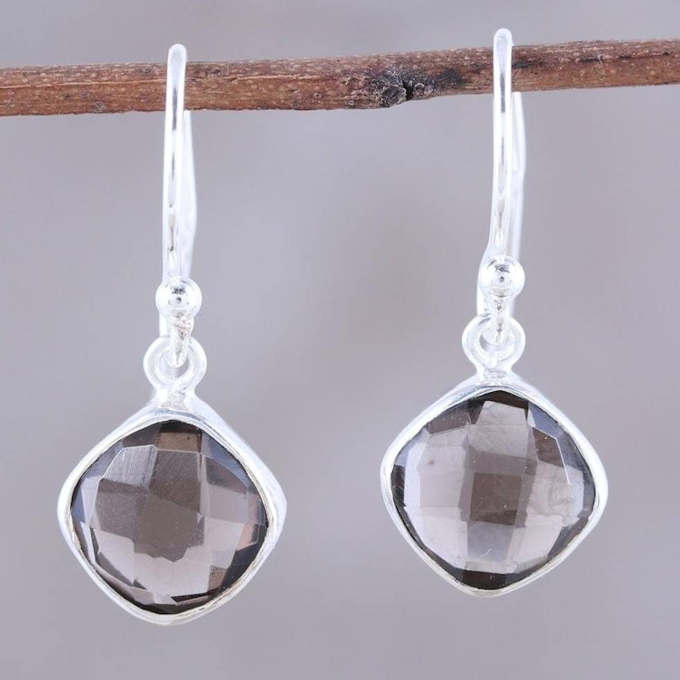 Checkerboard Cut Smoky Quartz and Silver Earrings 'Sea Glass' Item ID: 2669943536