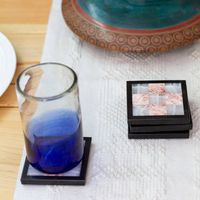 Chess Board-Themed Carved Onyx Marble Coasters Set of 4 'Chess Harmony' Item ID: 2676646672