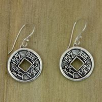 Chinese Coin Motif Sterling Silver Dangle Earrings 'Magical Coins' Item ID: 2671702563