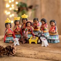 Christianity Ceramic Nativity Scene Sculpture Set of 12 'San Juan Comalapa' Item ID: 2671778221
