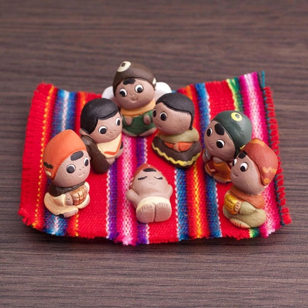 Super cute mini nativity scene with 7 figures on a peruvian woven tiny blanket-great for holiday decor!! Thanks so much!!