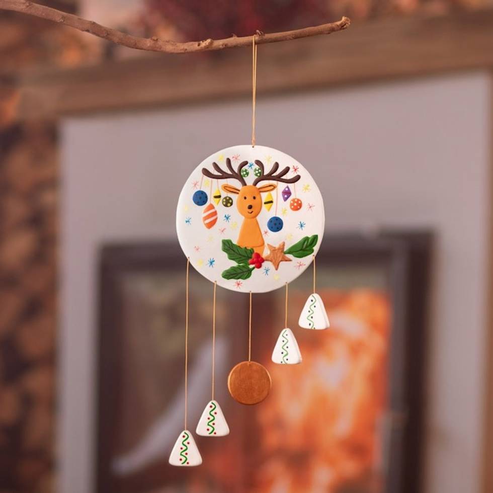 Christmas Reindeer Ceramic Wall Art Handcrafted in Peru 'Dreamy Rudolph' Item ID: 2669904578