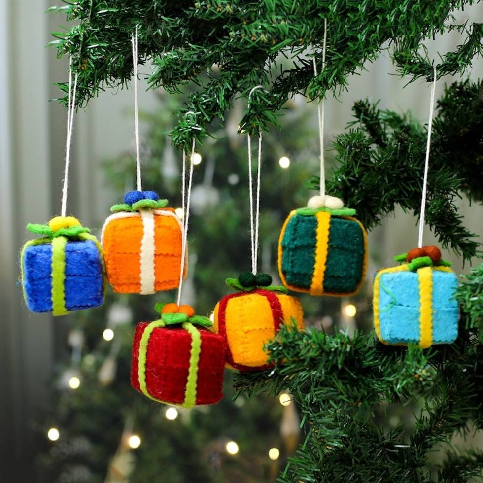 Christmas-Themed Gift-Shaped 6-Piece Wool Felt Ornament Set 'Festive Gifts' Item ID: 2671781066