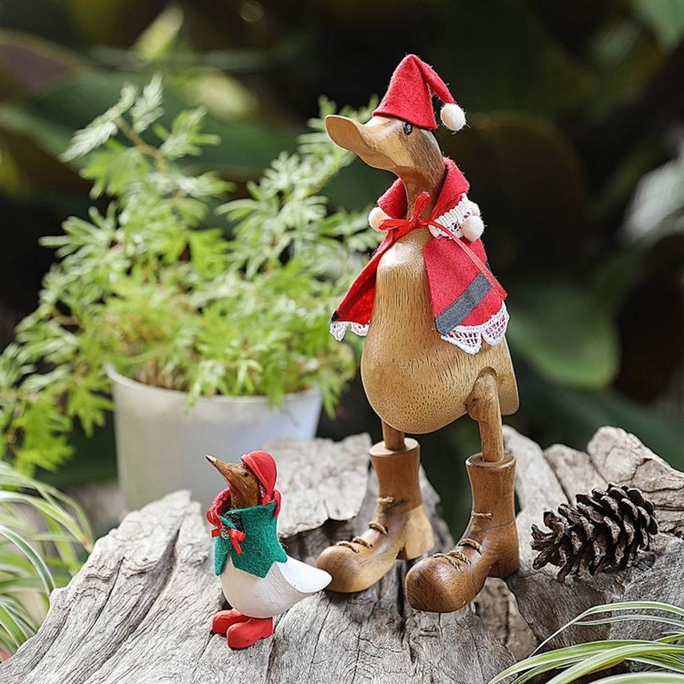 Christmas-Themed Set of 2 Wood Duck Sculptures from Bali 'Santa Duo' Item ID: 2671764284