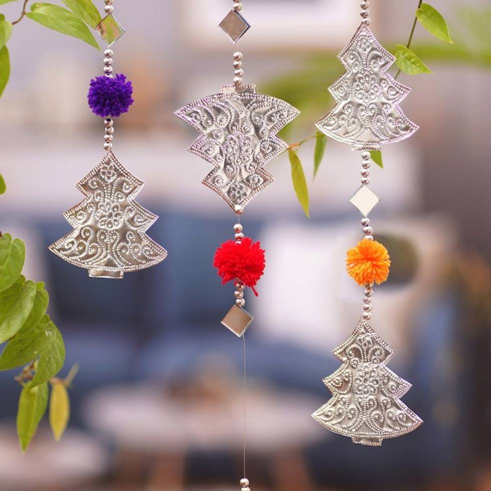 Christmas Tree Aluminum Garland with Glass and Pompoms 'Festive Forest' Item ID: 2671763225