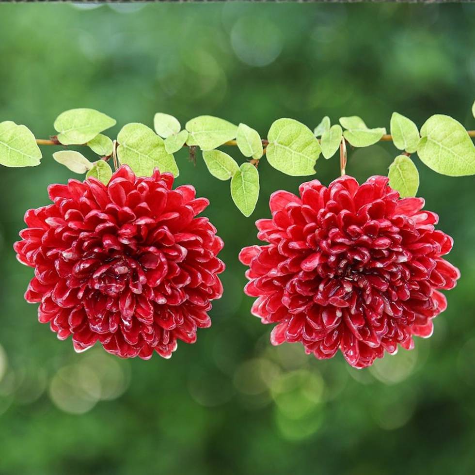Chrysanthemum-Themed 22k Gold-Accented Red Dangle Earrings 'Happy Red' Item ID: 2671796597