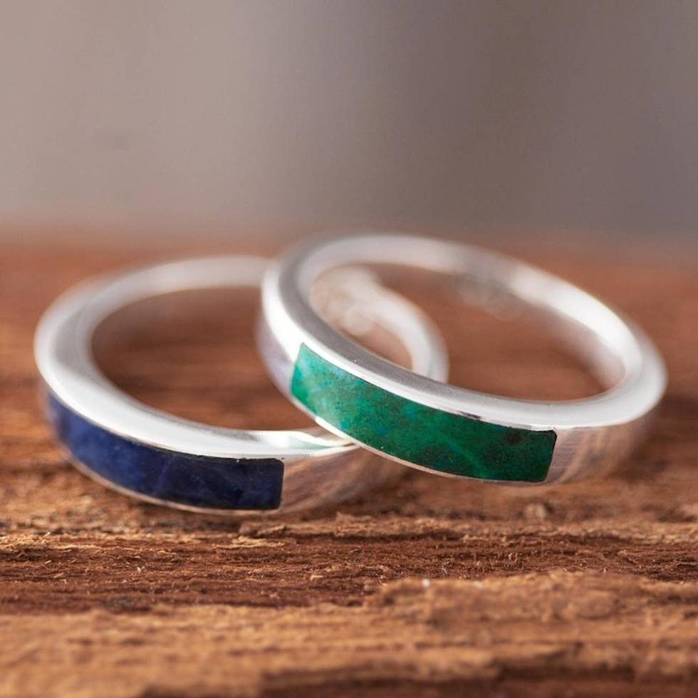 Chrysocolla and Sodalite Band Rings Pair 'Dual Enchantment' Item ID: 2671667550
