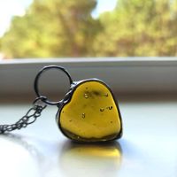 Chunky Glass Heart Pendant, Amber Heart Necklace, Yellow Glass Heart Jewelry Item ID: 2675048070