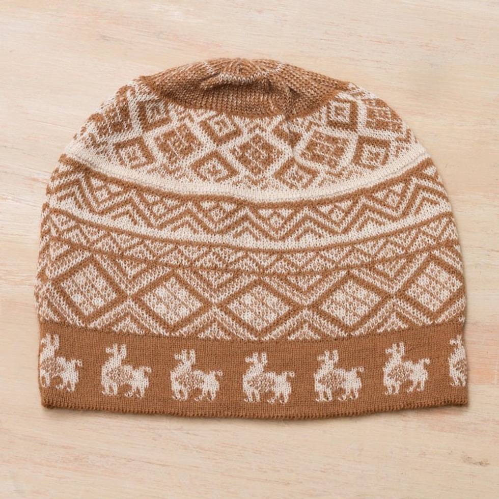 Cinnamon Brown and Ivory Diamond Motif Alpaca Blend Knit Hat 'Alpaca Parade in Cinnamon' Item ID: 2671819287