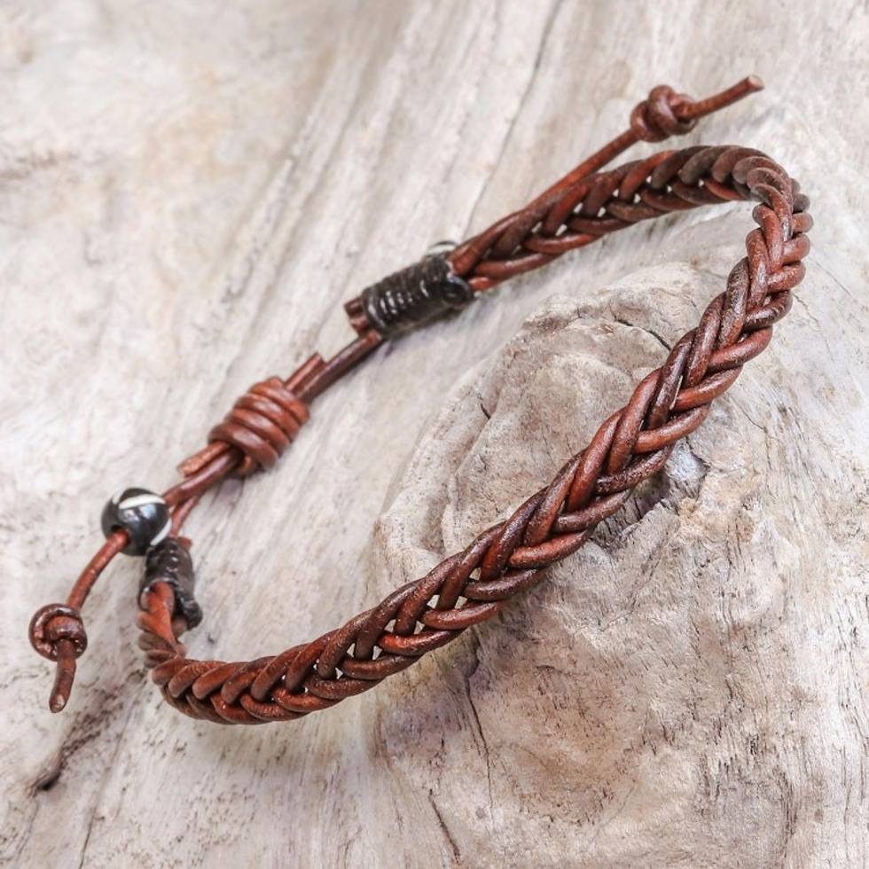 Cinnamon Brown Leather Braided Bracelet from Thailand 'Cinnamon Braid' Item ID: 2669930261