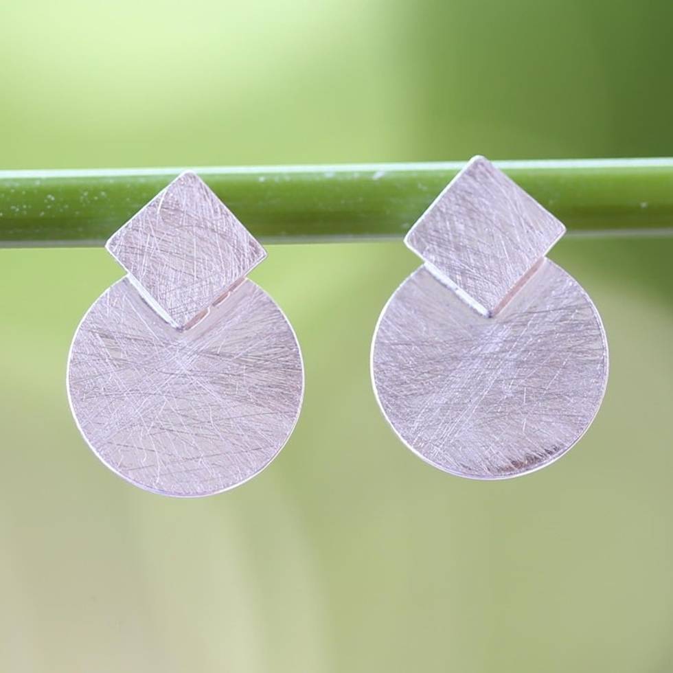 Circle and Rhombus Brushed Satin Sterling Silver Earrings 'Modern View' Item ID: 2671800587