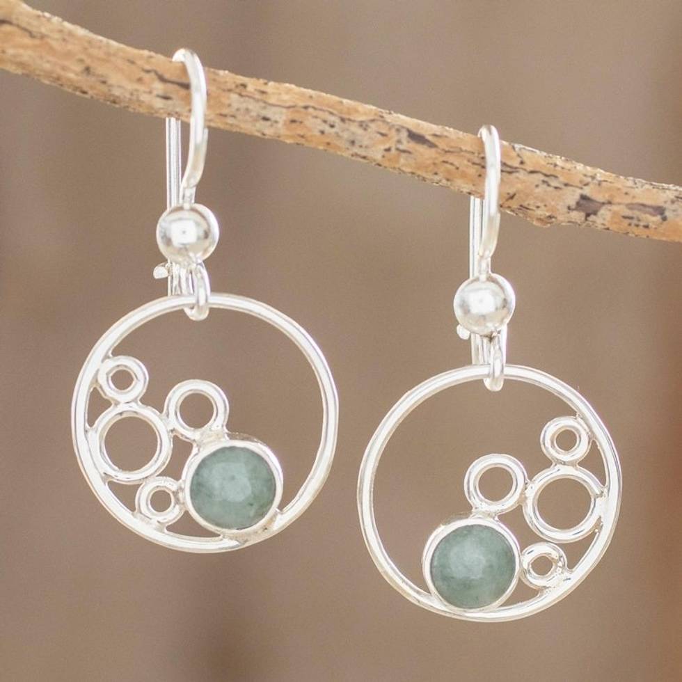 Circle Motif Jade Dangle Earrings from Guatemala 'Form and Color' Item ID: 2671776741