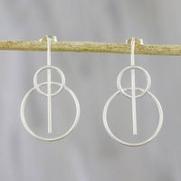 Circle-Motif Sterling Silver Drop Earrings from Thailand 'Rings of Light' Item ID: 2671801424