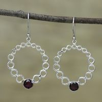 Circle Pattern Garnet Dangle Earrings from India 'Halo Rings' Item ID: 2671790161