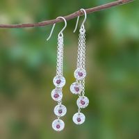 Circle Pattern Modern Garnet Dangle Earrings from Thailand 'Song of Rain' Item ID: 2671798586