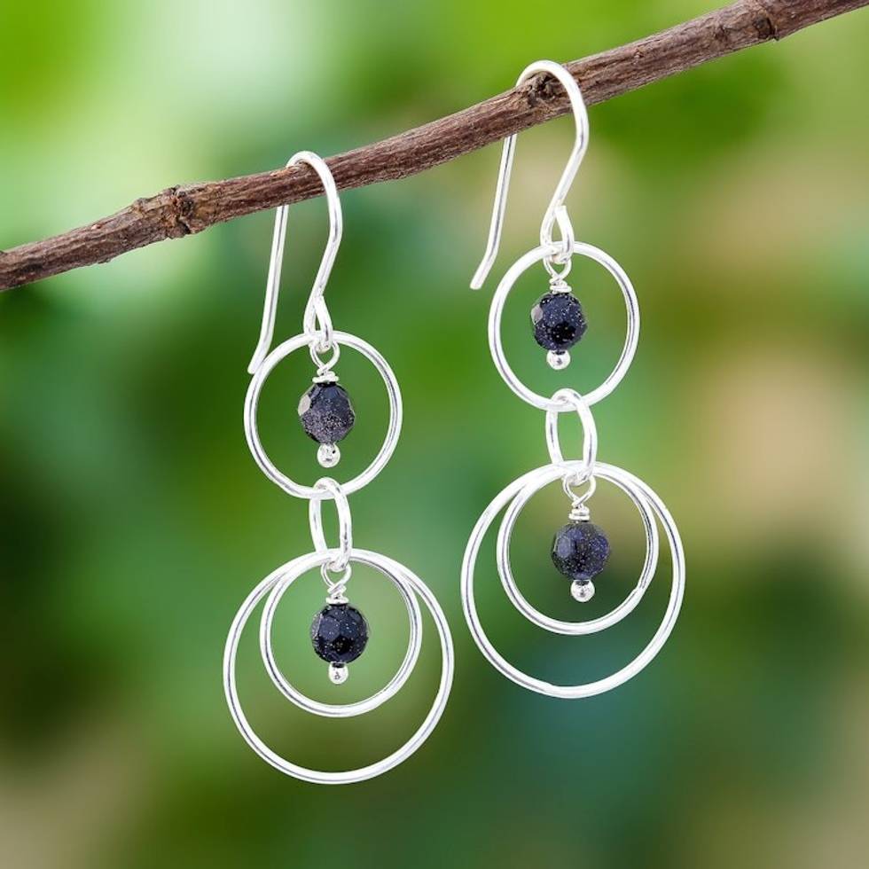 Circle Pattern Onyx Dangle Earrings from Thailand 'Great Universe' Item ID: 2671798323