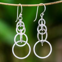 Circle Pattern Sterling Silver Dangle Earrings from Thailand 'Bubbly Rain' Item ID: 2671798450