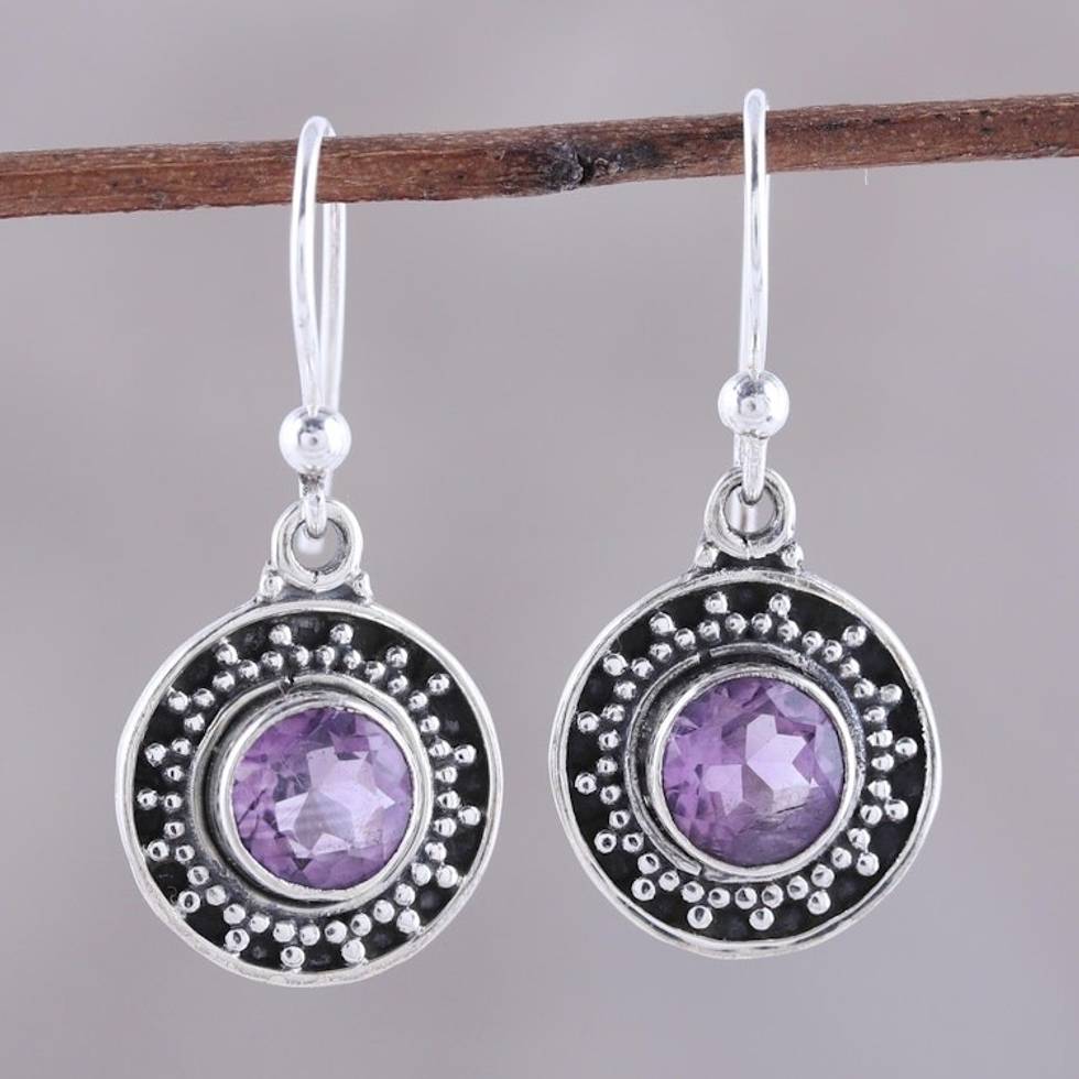 Circular Amethyst Dangle Earrings from India 'Circular Sparkle' Item ID: 2671792037