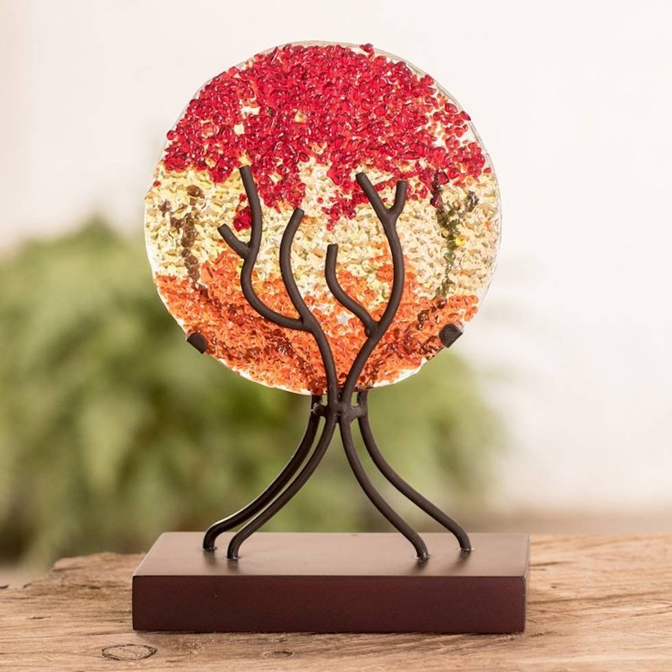 Circular Art Glass Sculpture in Red from El Salvador 'Fruit of Life in Red' Item ID: 2669923573