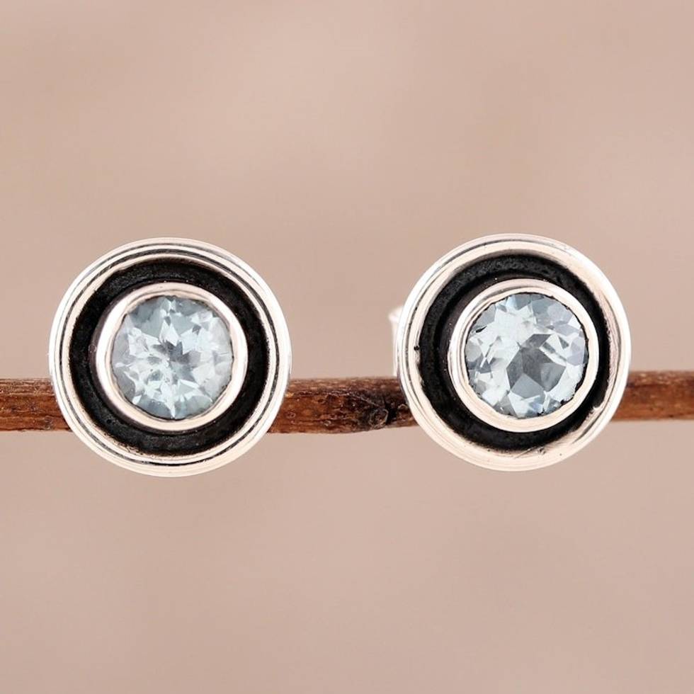Circular Blue Topaz Stud Earrings from India 'Graceful Frames' Item ID: 2671792219