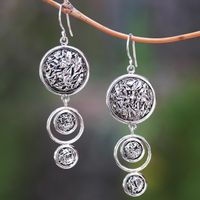 Circular Contoured Sterling Silver Dangle Earrings 'Contour Circles' Item ID: 2671744956