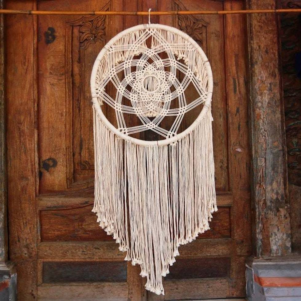 Circular Cotton Wall Hanging in Antique White from Bali 'Dream Knot' Item ID: 2675253889
