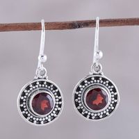 Circular Garnet Dangle Earrings from India 'Circular Sparkle' Item ID: 2676664139