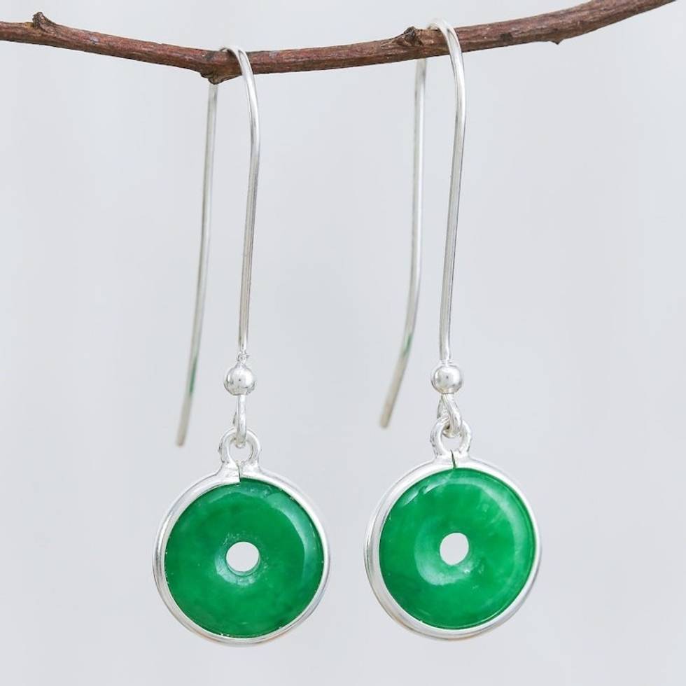 Circular Jade Dangle Earrings Crafted in Thailand 'Green Rings' Item ID: 2671798748