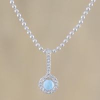 Circular Larimar and CZ Pendant Necklace from Thailand 'Gorgeous Blue' Item ID: 2671801358